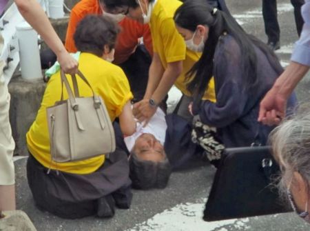 O πρώην πρωθυπουργός της Ιαπωνίας έδινε τιτάνια μάχη για να κρατηθεί στη ζωή μετά την επίθεση που δέχτηκε από άνδρα εφοδιασμένος με «χειροποίητο», σύμφωνα με τα ιαπωνικά ΜΜΕ, τουφέκι την ώρα που εκείνος εκφωνούσε ομιλία.