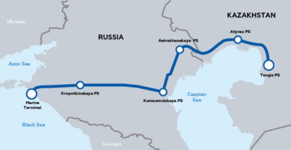 Η πορεία του αγωγού Caspian Pipeline (CPC) προς το ρωσικό λιμάνι του Νοβοροσίσκ, στη Μαύρη Θάλασσα (χάρτηςTransneft)