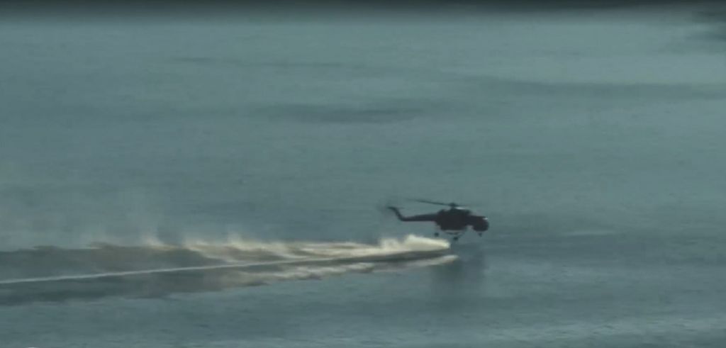 Στην προσπάθεια υδροληψίας, ενώ οι συνθήκες που επικρατούσαν στην περιοχή δεν ήταν ιδανικές, αλλά φυσούσαν δυνατοί άνεμοι και ο κυματισμός ήταν έντονος, το ελικόπτερο τούμπαρε, με συνέπεια οι τέσσερις επιβαίνοντες να βρεθούν στη θάλασσα.