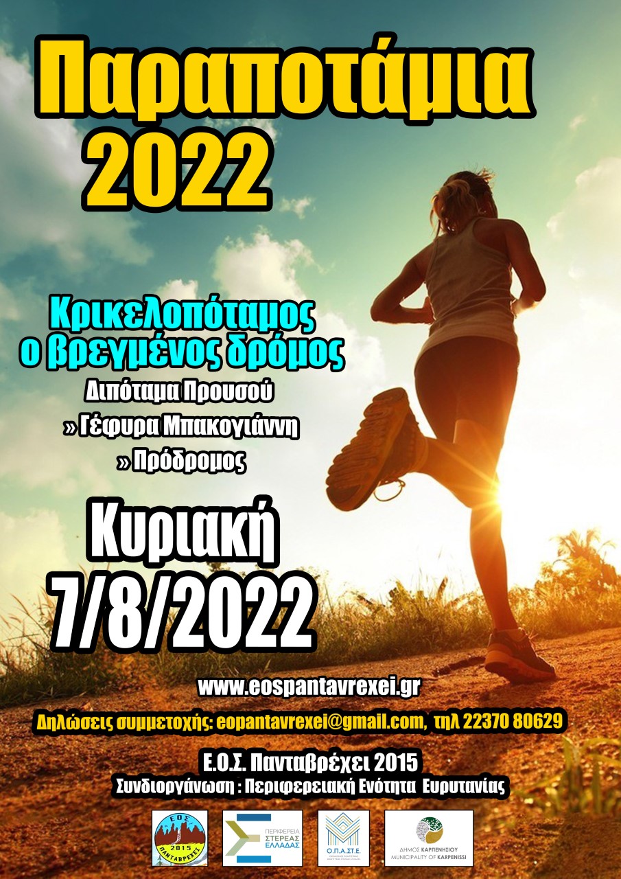 Για έκτη συνεχή χρονιά ο Ελληνικός Ορειβατικός Σύλλογος «ΠΑΝΤΑΒΡΕΧΕΙ», ο οποίος ιδρύθηκε το 2015 από μια ομάδα ανθρώπων με όραμα και αγάπη για την περιοχή της Νότιας Ευρυτανίας, διοργανώνει τα 6α Παραποτάμια 2022 – «Κρικελοπόταμος, ο Βρεγμένος Δρόμος».