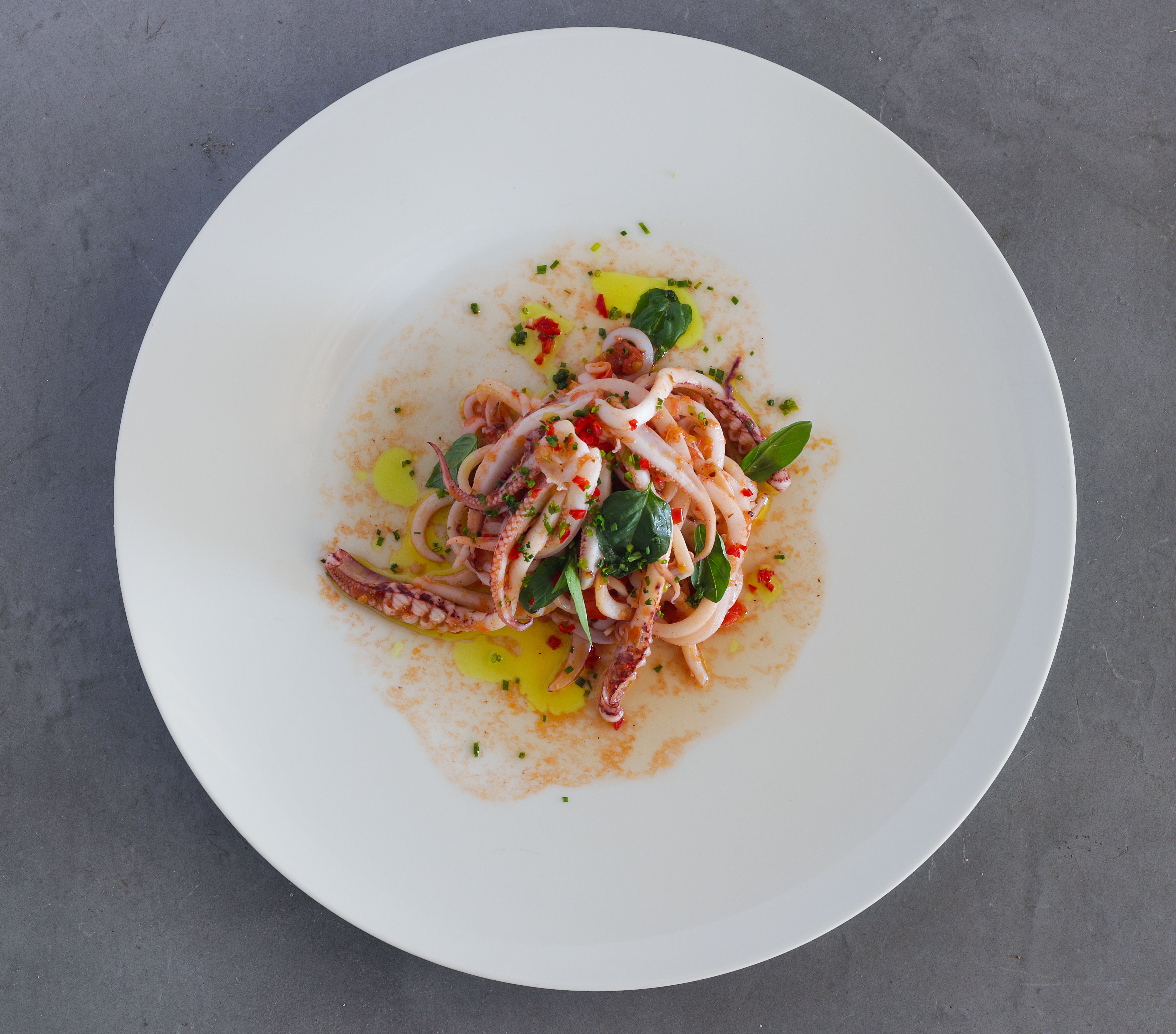 500 γρ. καλαμάρι, κατά προτίμηση φρέσκο, χωρίς τη μεμβράνη του, κομμένο σε πολύ λεπτά μπαστουνάκια (ζουλιέν)