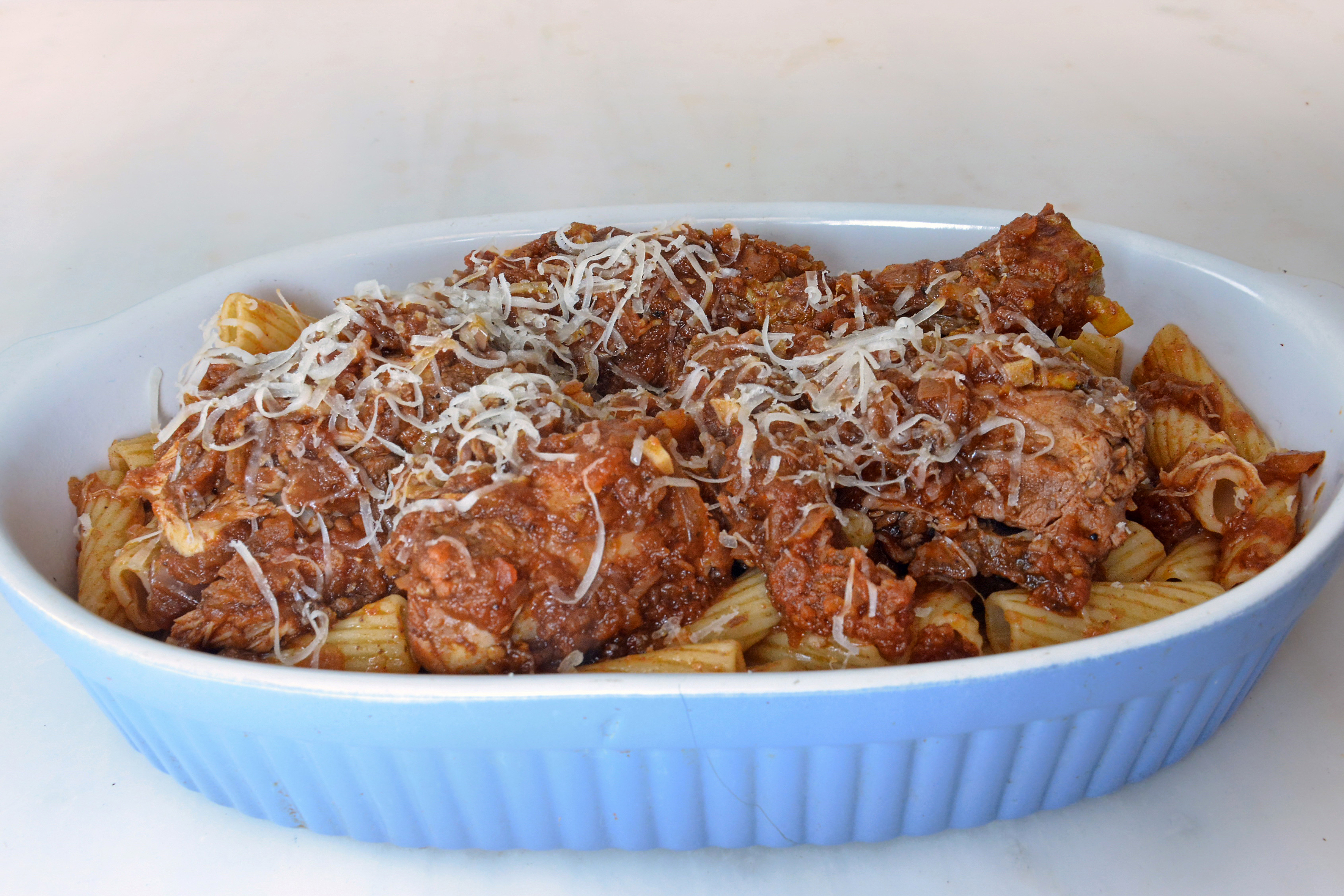 Σερβίρουμε με ριγκατόνι («σέλινα» κατά τους Κερκυραίους) ή με μακαρόνια τρυπητά για παστίτσιο και τριμμένο τυρί.
