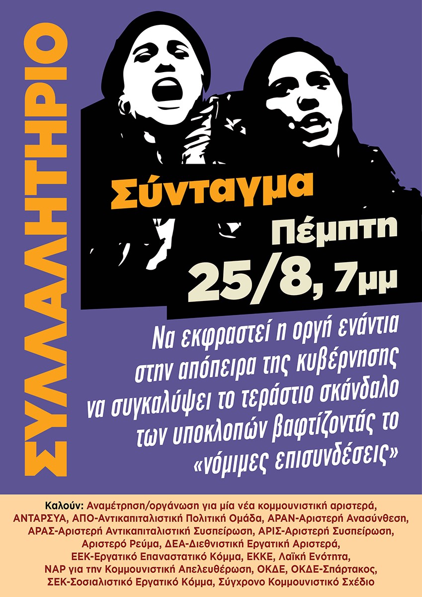 Να εκφραστεί η οργή ενάντια στην απόπειρα της κυβέρνησης να συγκαλύψει αυτό το τεράστιο σκάνδαλο βαφτίζοντας το «νόμιμες επισυνδέσεις».