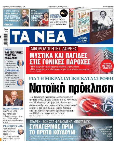• Το Στρατηγείο της Σμύρνης «πανηγύρισε» για την ήττα του ελληνικού Στρατού στις 30 Αυγούστου του ’22 • Βούτυρο στο ψωμί της εθνικιστικής έξαρσης του Ερντογάν που αναζητά αντιπερισπασμό με τους S-300 στην Κρήτη • Εντονο διάβημα από την Αθήνα • Αργά χθες βράδυ η ανάρτηση του ΝΑΤΟ «κατέβηκε» από το Τwitter