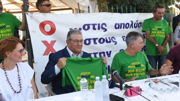 «Έχετε απόλυτο δίκιο, έχετε τη συμπαράσταση όλης της χώρας», τόνισε ο γραμματέας του ΚΚΕ.