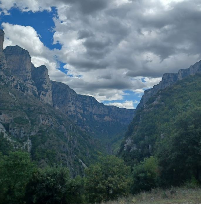 θέα στο φαράγγι του Βίκου από το ομώνυμο χωριό Βίκος. Στα ριζά του πηγάζει ο Βοϊδομάτης