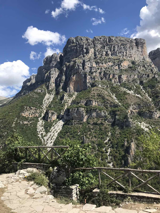 Αρχίζουμε να κατηφορίζουμε για τα καλά και απέναντί μας εμφανίζεται η διπλή, μοναδική θέα. Αντίκρυ μας οι γνωστοί ως Πύργοι του Πάπιγκου, τα επιβλητικά βραχώδη όρη της Αστράκας στις παρυφές της οποίας εκτείνεται το Μικρό και το Μεγάλο Πάπιγκο. Ενώ στο βάθος της διαδρομής των ματιών μας το φαράγγι του Βίκου, εκεί που γεννιέται και κυλά ο Βοϊδομάτης. Ο ποταμός θεωρείται από τους καθαρότερους αν όχι ο καθαρότερος ποταμός της Ευρώπης.