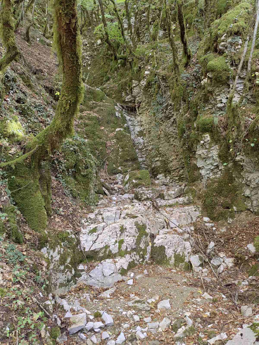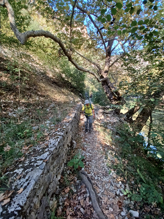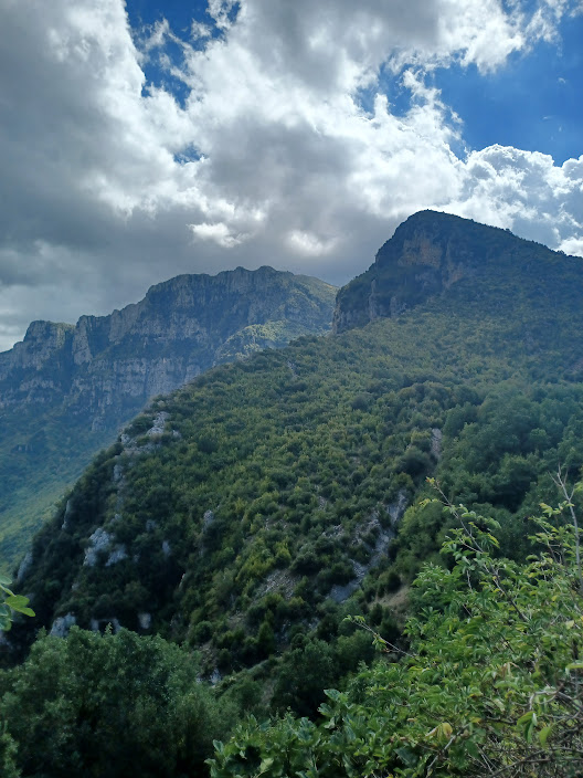 Απέναντί μας στέκει το Μικρό και το Μεγάλο Πάπιγγο. Δεν θα τραβήξουμε κατά εκεί. Δε θα διασχίσουμε το φαράγγι. Θα μείνουμε στο πλάι του και μέσα από το κατάφυτο μονοπάτι που κινείται παράλληλα με το ρου του θα κατευθυνθούμε προς το γεφύρι της Αρίστης.