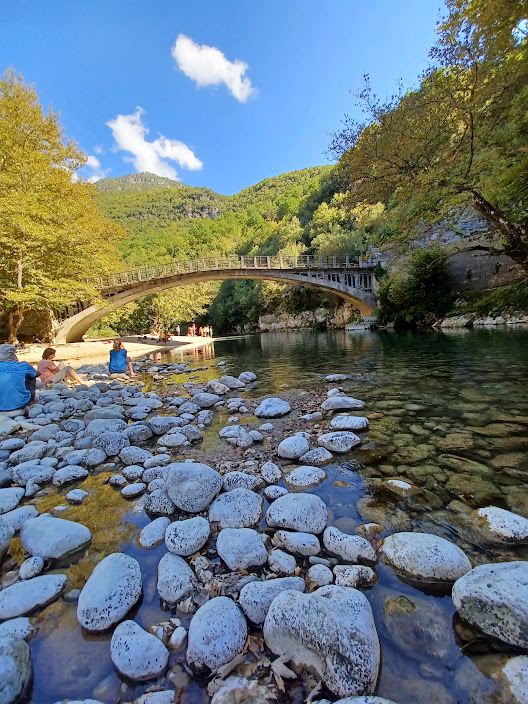 Η μαγική πορεία συνεχίζει δίπλα στην όχθη του ποταμού και χαρίζει μαγικές στιγμές και εικόνες με γαλαζοπράσινα νερά, αλλού ήρεμα αλλού κινητικά, να ελίσσονται ανάμεσα στα πλατάνια και στις πέτρες. Ο επόμενος υδάτινος σταθμός μας είναι γεγονός. Είμαστε στη γέφυρα της Αρίστης.