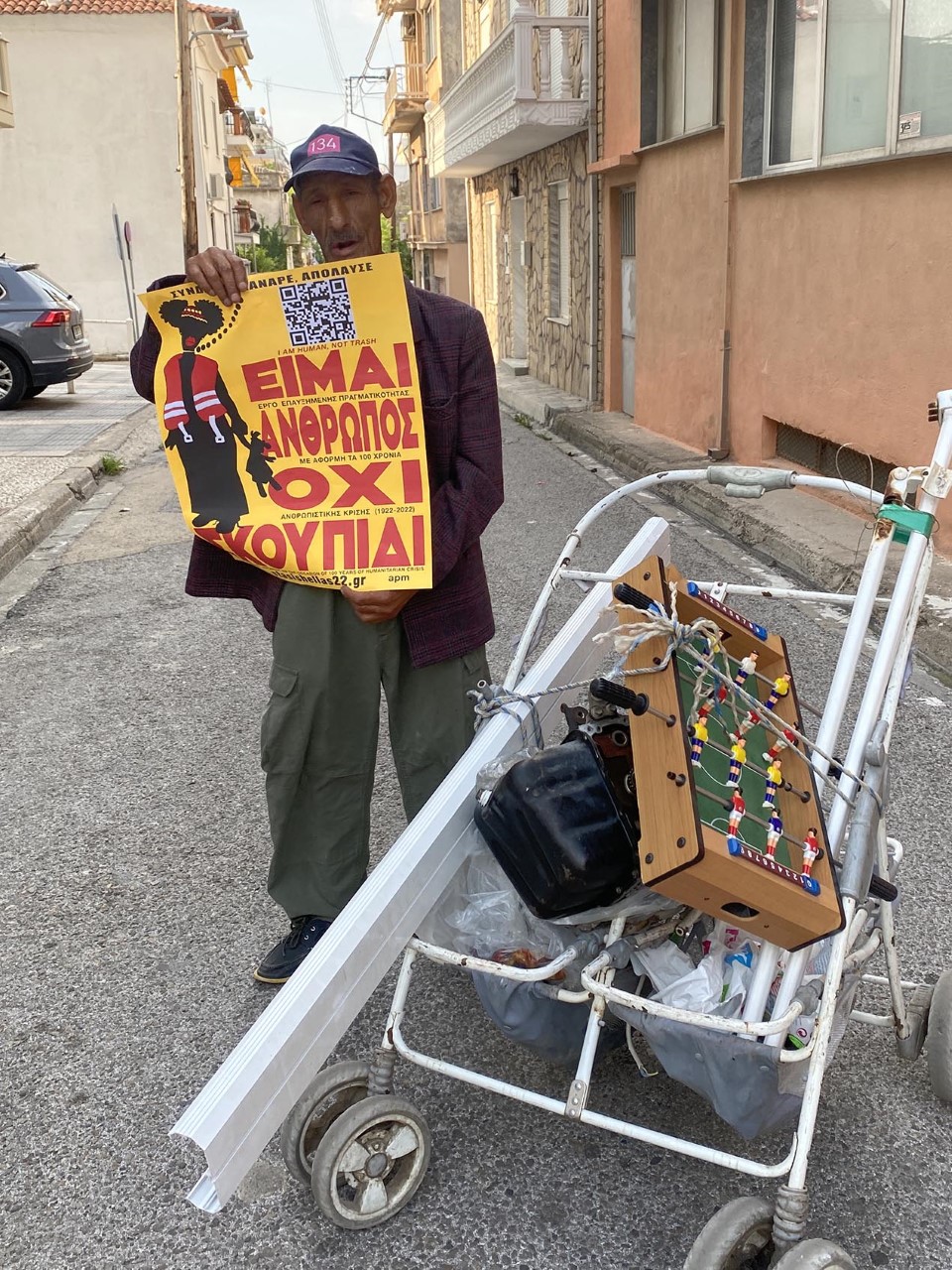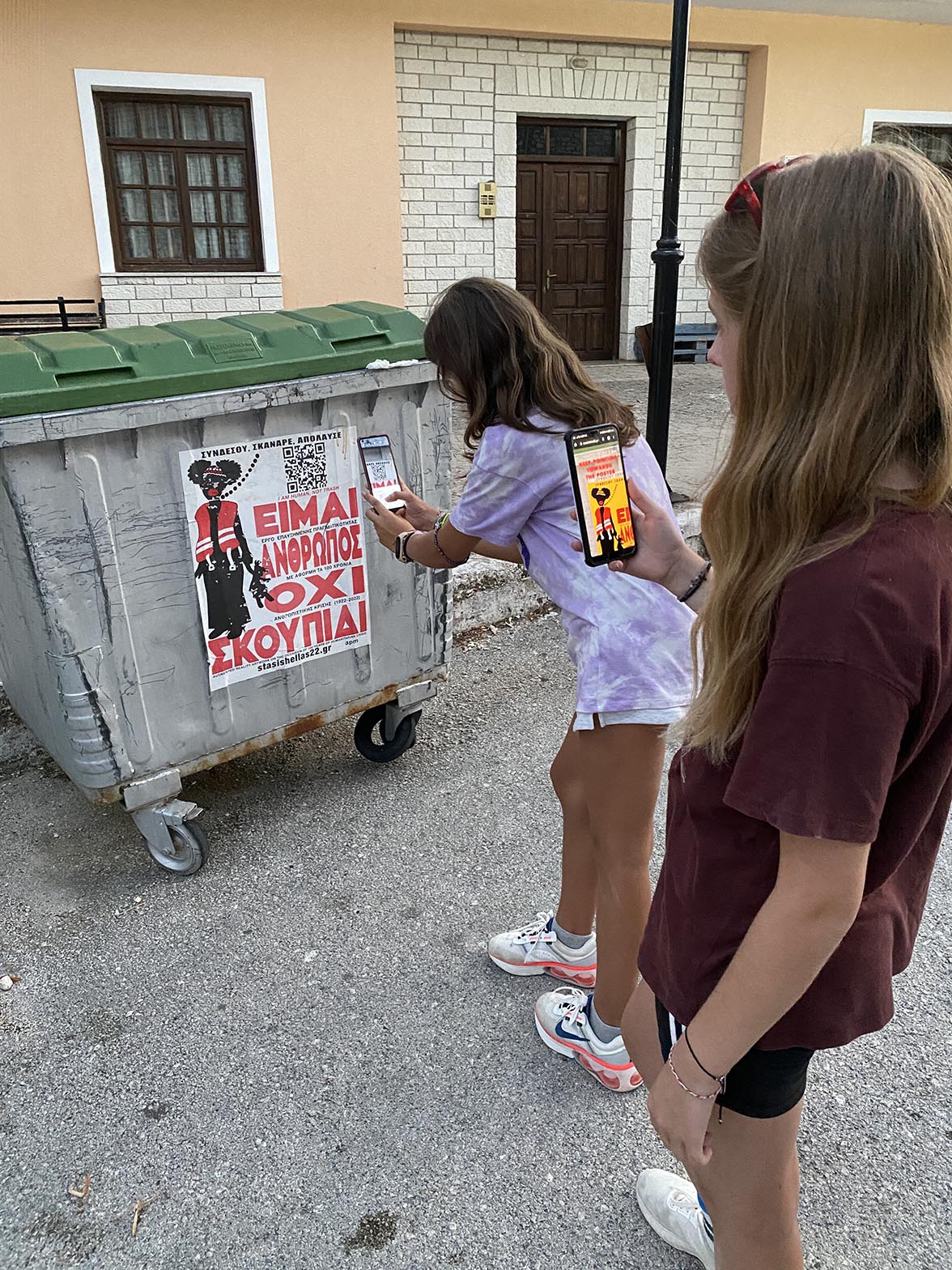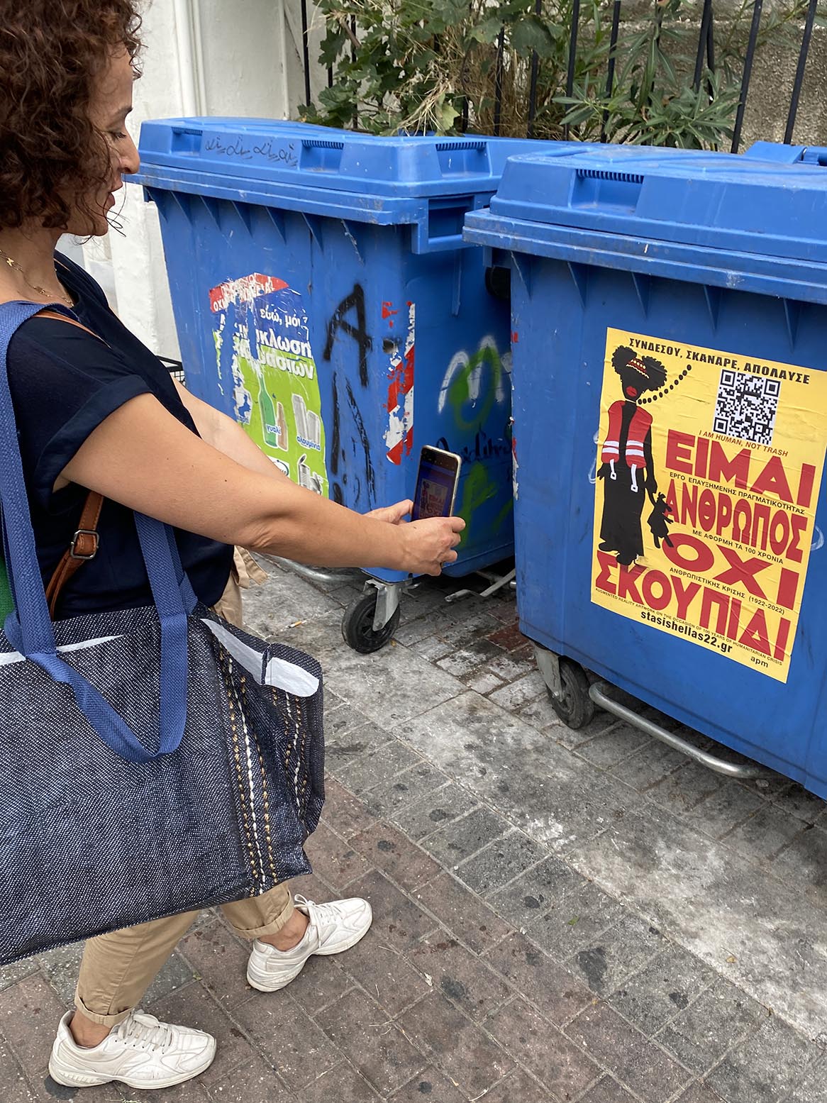 Συνδυάζοντας το φυσικό με το ψηφιακό, η αφίσα, με ένα κλικ του κινητού τηλεφώνου, μεταμορφώνεται από στατική χάρτινη επιφάνεια σεκινηματογραφική ταινία. Η ιστορία της ψηφιακής ταινίας εμπλουτίζεται κάθε δύο μήνες με καινούργιο επεισόδιο.Η αφίσα «Είμαι άνθρωπος όχι σκουπίδι» που βρίσκεται κολλημένη πάνω σε κάδους παντού σε όλη τη χώρα δεν προωθεί ένα γεγονός. Η αφίσα είναι το ίδιο το γεγονός. Ταινία και αφίσα φτιάχτηκαν με αφορμή τα 100 χρόνια από τη Μικρασιατική Καταστροφή.