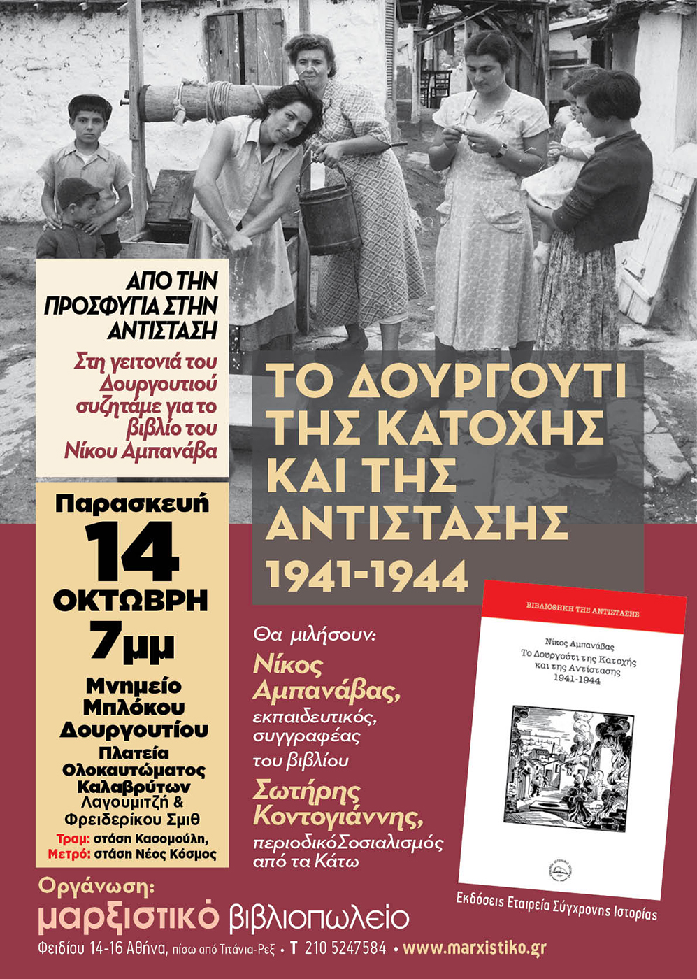 Το βιβλίο του εκπαιδευτικού Νίκου Αμπανάβα «Το Δουργούτι της Κατοχής και της Αντίστασης 1941-1944» παρουσιάζουν την Παρασκευή 14 Οκτωβρίου , στις 7μμ. οι εκδόσεις «Μαρξιστικό Βιβλιοπωλείο».