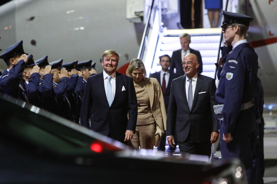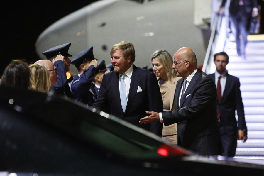 Ο υπουργός Εξωτερικών Νίκος Δένδιας υποδέχθηκε το βράδυ της Κυριακής στο αεροδρόμιο «Ελευθέριος Βενιζέλος» στην Αθήνα, τον Βασιλιά Γουλιέλμο-Αλέξανδρο και τη Βασίλισσα Μάξιμα, οι οποίοι πραγματοποιούν επίσκεψη στην Ελλάδα έως τις 2 Νοεμβρίου, έπειτα από πρόσκληση της Προέδρου της Δημοκρατίας Κατερίνας Σακελλαροπούλου.