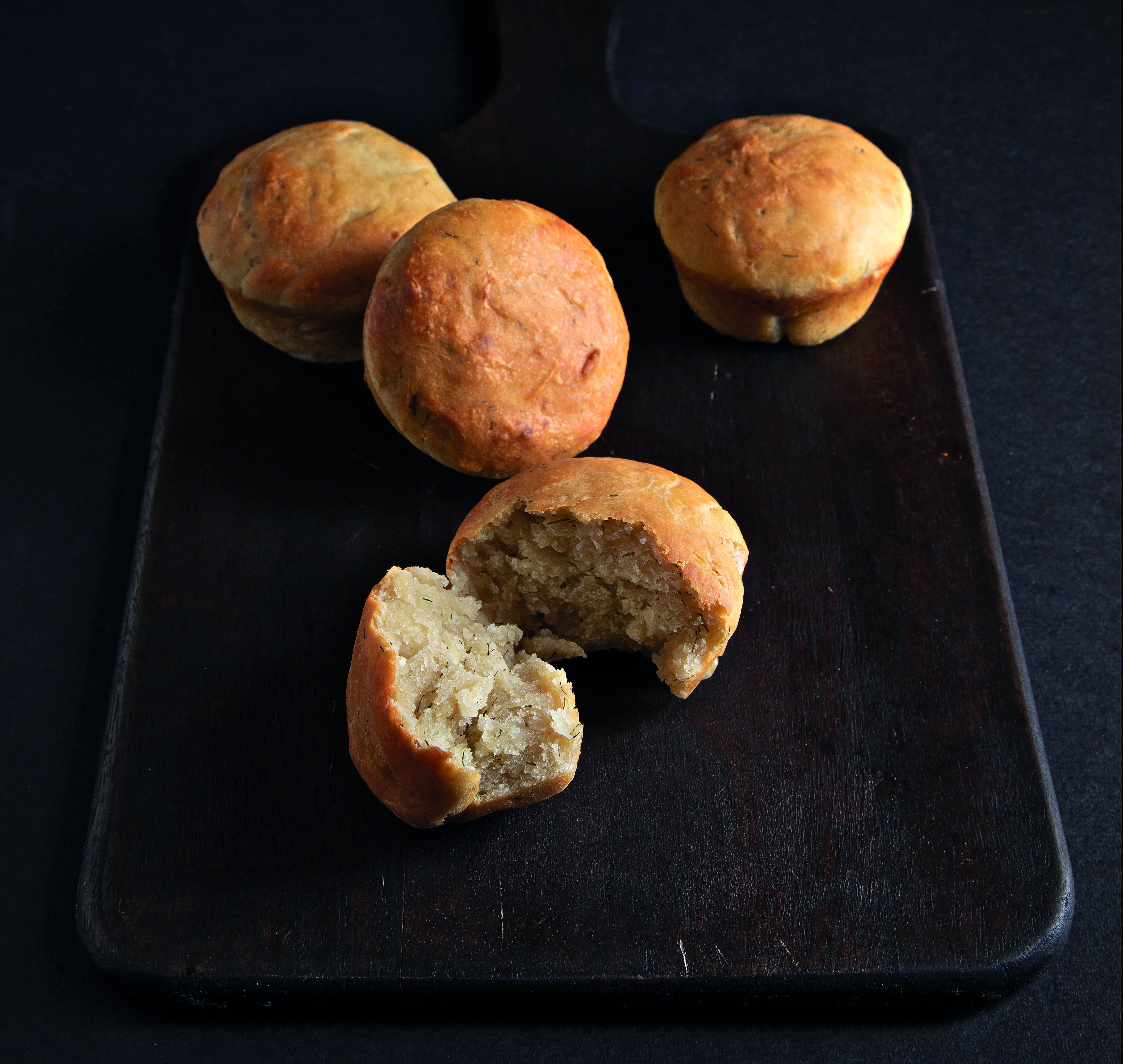Προθερμαίνουμε τον φούρνο στους 180ο C. Λαδώνουμε μια φόρμα για μάφιν και βάζουμε μέσα στις θήκες τα κομματάκια της ζύμης. Σκεπάζουμε και πάλι και αφήνουμε σε ζεστό μέρος για 30 ακόμα λεπτά. Βάζουμε στον προθερμασμένο φούρνο και ψήνουμε για 40 περίπου λεπτά μέχρι να ροδίσουν τα ψωμάκια.
