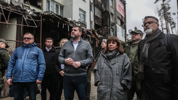 Στις πληγείσες από τους ρωσικούς βομβαρδισμούς πόλεις της Ουκρανίας Μποροντιάνκα, Μπούτσα και Ιρπίν, όπου είχε συνομιλίες με τις τοπικές αρχές και κατοίκους. μετέβη η Πρόεδρος της Δημοκρατίας, συνοδευόμενη από τον υπουργό Άμυνας Νίκο Παναγιωτόπουλο. Στη Μπούτσα , συγκεκριμένα, η κυρία Σακελλαροπούλου περιηγήθηκε στο σημείο που βρέθηκαν ομαδικοί τάφοι Ουκρανών πολιτών στον περίβολο της εκκλησίας του Αγίου Ανδρέα και είδε φωτογραφική έκθεση με αμάχους θύματα του πολέμου. Αντικρύζοντας τους ομαδικούς τάφους των Ουκρανών, δεν μπόρεσε να συγκρατήσει τα δάκρυά της. Σύμφωνα με τον δήμαρχο του Ιρπίν, Ολεξάντρ Μαρκούσιν, η Πρόεδρος Σακελλαροπούλου σοκαρίστηκε από το μέγεθος της καταστροφής. «Ελπίζω λοιπόν ειλικρινά ότι θα λάβουμε και από την Ελλάδα υποστήριξη για την αποκατάσταση της πόλης μας», πρόσθεσε ο Μαρκούσιν.