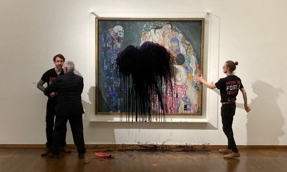 Ο διάσημος πίνακας «Θάνατος και ζωή» του Αυστριακού ζωγράφου Γκούσταβ Κλιμτ δέχθηκε σήμερα επίθεση με μαύρο υγρό από ακτιβιστές για το κλίμα, ανακοίνωσε το Μουσείο Leopold της Βιέννης.