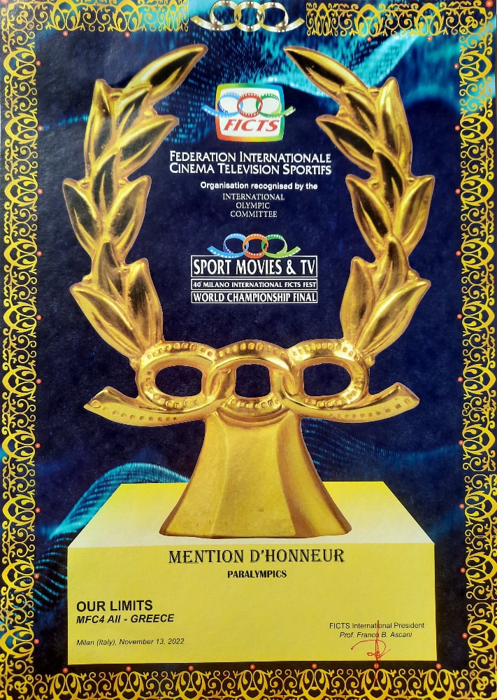 Θέση ανάμεσα στις καλύτερες αθλητικές ταινίες στο κόσμο για το 2022 έλαβε στο τελικό των 20 Φεστιβάλ στο Μιλάνο, το MILANO FICTS (9-13 Νοεμβρίου) στις 13 Νοεμβρίου, η ταινία «ΤΑ ΟΡΙΑ ΜΑΣ», του Δημήτρη Γιατζουζάκη, με πρωταγωνιστή τον Γιάννη Χατζήμπεη, Paralympian & Ironman. Το Φεστιβάλ MILANO – FICTS αποτελεί τον τελικό των 20 Φεστιβάλ Αθλητικών ταινιών απ’ όλο τον κόσμο 2022 και στην φετινή 40ή έκδοσή του συμμετείχαν 130 χώρες μέλη.