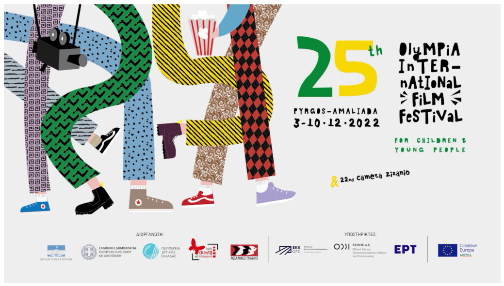 Αρχίζει σήμερα Σάββατο 3 Δεκεμβρίου το 25ο Διεθνές Φεστιβάλ Κινηματογράφου Ολυμπίας για Παιδιά και Νέους και μαζί του η 22η Ευρωπαϊκή Συνάντηση Νεανικής Οπτικοακουστικής Δημιουργίας Camera Zizanio. Το Φεστιβάλ πραγματοποιείται κυρίως στον Πύργο, την πρωτεύουσα της περιφερειακής ενότητας Ηλείας, με βάση το Δημοτικό Θέατρο Απόλλων όπου το κοινό μπορεί να παρακολουθεί τις προβολές των περισσότερων διαγωνιζόμενων ταινιών (μεγάλου μήκους μυθοπλασίας, μικρού μήκους μυθοπλασίας, μικρού μήκους animation) και ορισμένες ειδικές προβολές. Το ωρολόγιο πρόγραμμα προβολών στον Πύργο είναι διαθέσιμο εδώ: