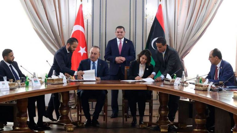 Πέντε Λίβυοι δικηγόροι προσέφυγαν στο αρμόδιο δικαστήριο της Τρίπολης στη Λιβύη, ενάντια στο πρόσφατο μνημόνιο, που υπέγραψε η προσωρινή κυβέρνηση Εθνικής Ενότητας του Αμπντελχαμίντ Ντμπεϊμπά και η Τουρκία, στον τομέα των υδρογονανθράκων, το οποίο όπως τονίζει η Αθήνα, «παραβιάζει τα κυριαρχικά δικαιώματα της Ελλάδας, αποτελεί παραβίαση του διεθνούς δικαίου και μια εσκεμμένη κλιμάκωση που υπονομεύει τη σταθερότητα στην περιοχή».