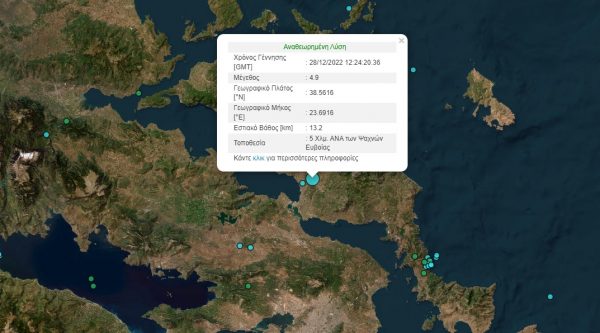 Ισχυρή σεισμική δόνηση σημειώθηκε λίγο πριν τις 14:30 στην Ευβοια. Σύμφωνα με την αναθεωρημένη λύση του Γεωδυναμικό Ινστιτούτου πρόκειται για σεισμό μεγέθους 4,9 Ρίχτερ.