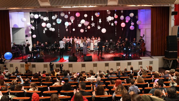 Έτσι, στην αίθουσα Συνεδρίων του ΚΚΕ αντί για πολιτικές συζητήσεις και αναλύσεις, αντήχησαν παιδικές φωνές και παιδικά τραγούδια. Τραγούδια που ταξίδεψαν τα μικρά παιδιά στη χώρα της Λιλιπούπολης του Χατζηδάκι, πάνω σε ένα “μικράκι ελεφαντάκι” του Γιώργη Χατζηπιερή, που κυνηγούσε ένα “τόπι χρυσό” του Θεοδωράκη και χαιρετούσε τον “Κύριο Μενεξέ” του Ελύτη. Όπως είπε και ο Δημήτρης Κουτσούμπας, ο οποίος βρέθηκε ανάμεσα στα μικρά παιδιά: “αυτές οι πρωτοβουλίες δίνουν ανάσα, χαρά στα παιδιά και στους γονείς τους ιδιαίτερα αυτές τις γιορτινές μέρες. Προσθέτουν ένα μικρό λιθαράκι, ώστε να μπουν στην καρδιά των παιδιών οι αξίες της συλλογικότητας, της αλληλεγγύης, του αγώνα. Αξίες που είναι πάρα πολύ σημαντικές, ιδιαίτερα σήμερα που ζούμε σε μία κοινωνία, η οποία όλο και περισσότερο μετατρέπεται σε μια εχθρική ζούγκλα ιδιαίτερα για τους νέους ανθρώπους.”.