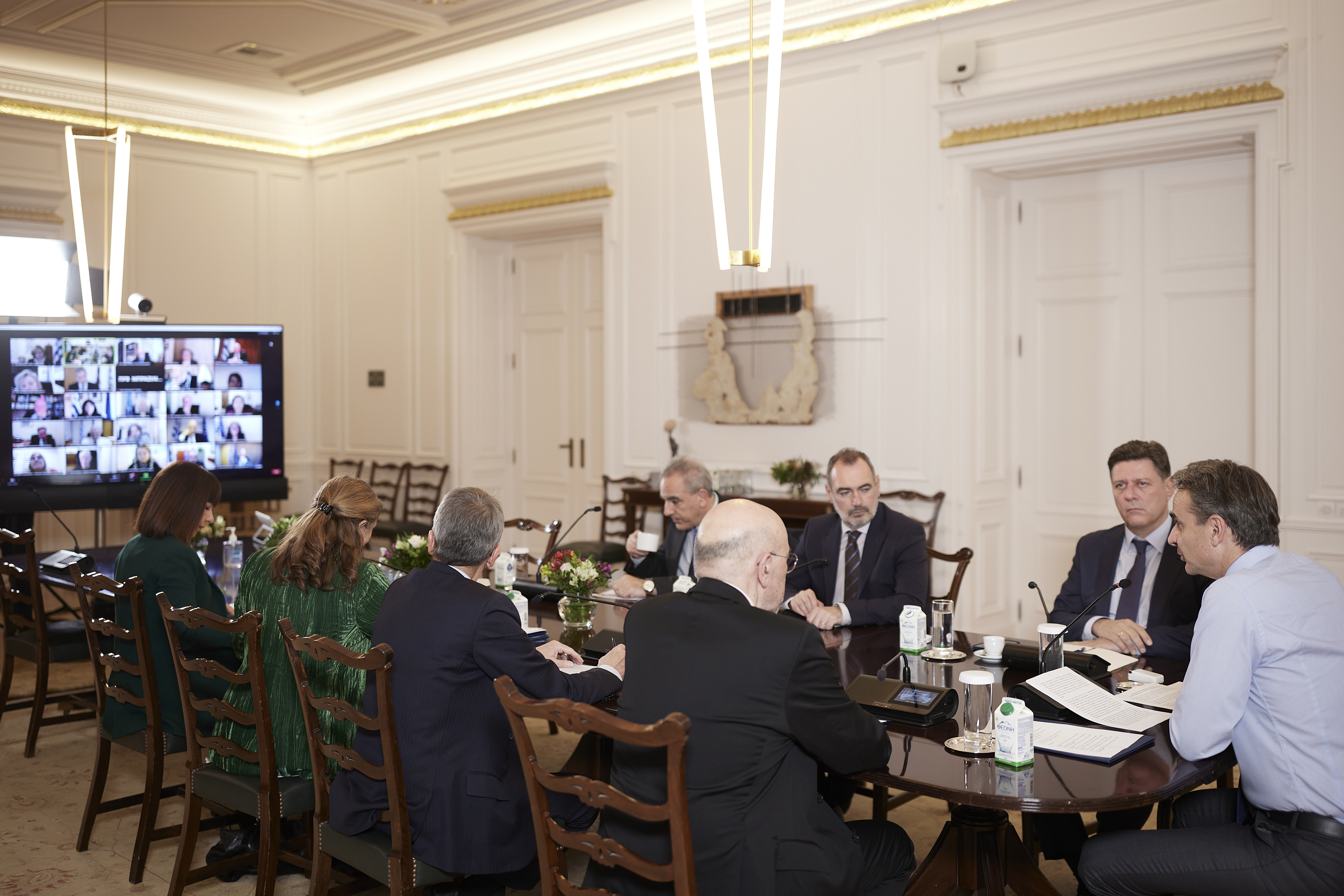 Στην τηλεδιάσκεψη έλαβαν μέρος εξ αποστάσεως ο υπουργός Εξωτερικών Νίκος Δένδιας και με φυσική παρουσία ο αναπληρωτής υπουργός Εξωτερικών Μιλτιάδης Βαρβιτσιώτης, ο υφυπουργός αρμόδιος για την Οικονομική Διπλωματία και Εξωστρέφεια Κώστας Φραγκογιάννης, ο υφυπουργός αρμόδιος για τον Απόδημο Ελληνισμό Ανδρέας Κατσανιώτης, ο α΄ γενικός διευθυντής του υπουργείου Εξωτερικών πρέσβης Ρούσος Κούνδουρος, η διευθύντρια του Διπλωματικού Γραφείου του Πρωθυπουργού, πρέσβης ‘Αννα Μαρία Μπούρα, ο σύμβουλος Εθνικής Ασφάλειας Θάνος Ντόκος και η αναπληρώτρια κυβερνητική εκπρόσωπος Αριστοτελία Πελώνη.