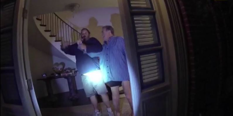 Το συγκλονιστικό βίντεο δείχνει αστυνομικούς να φτάνουν στην εξώπορτα της κατοικίας των Πελόζι στο Σαν Φρανσίσκο και να χτυπούν την πόρτα.
