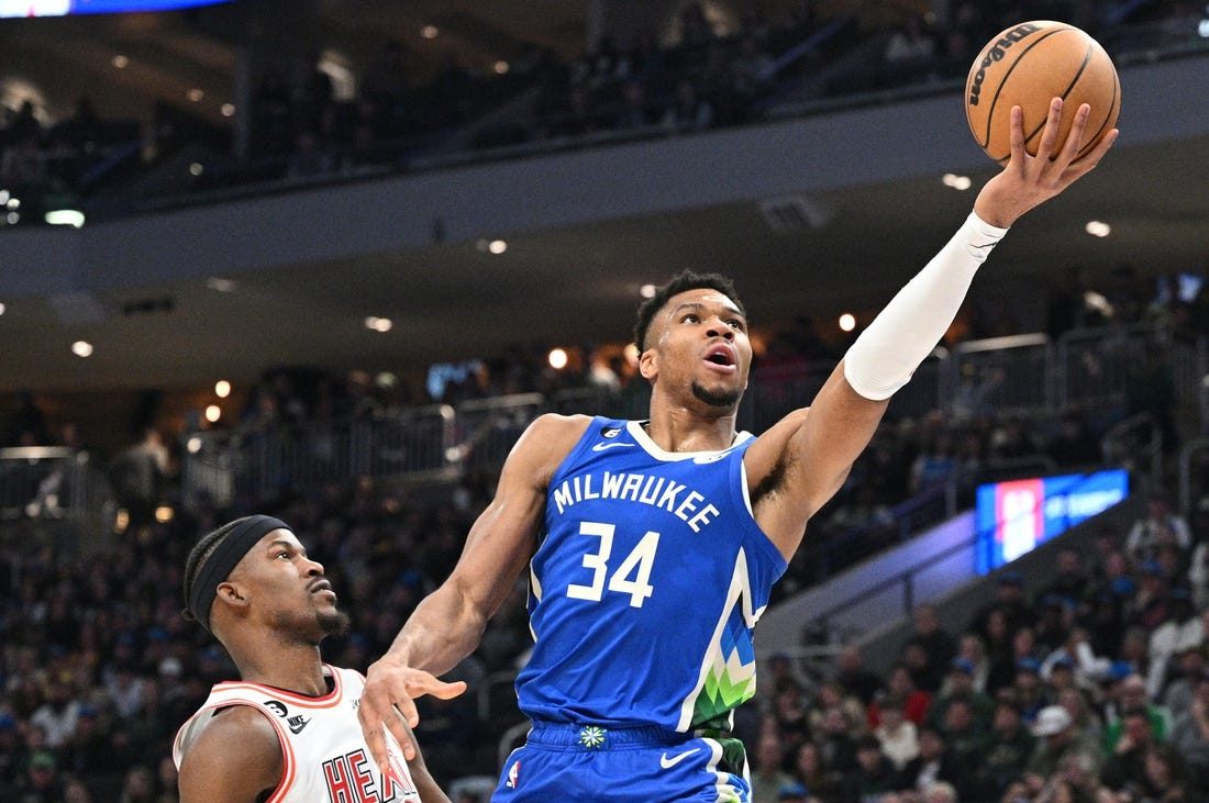 Με μια ακόμη «μυθική» εμφάνιση, ο «τριπλός» Γιάννης Αντετοκούνμπο οδήγησε τους Μιλγουόκι Μπακς στην έβδομη συνεχόμενη νίκη, καθώς τα «ελάφια» επικράτησαν των Μαϊάμι Χιτ με 123-115.