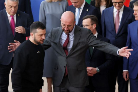 «Καλωσήρθες στην ΕΕ, καλωσήρθες στο σπίτι σου», καλωσόρισε τον Βλαντιμίρ Ζελένσκι ο πρόεδρος του Ευρωπαϊκού Συμβουλίου, Σαρλ Μισέλ, λέγοντας: «Εκτιμούμε την επίσκεψή σας, είστε ένας ηγέτης εν καιρώ πολέμου που εμπνέει τον κόσμο, ειδικά τον ελεύθερο κόσμο».