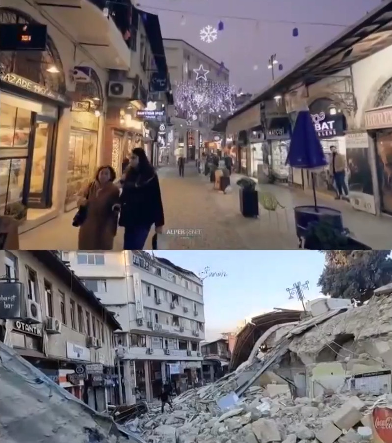 Μεγάλη θλίψη προκαλούν οι εικόνες των κτιρίων στη Τουρκία που παρουσιάζουν το πριν και το μετά από την κατάρρευση που προκάλεσαν οι φονικοί σεισμοί, που έπληξαν την χώρα.
