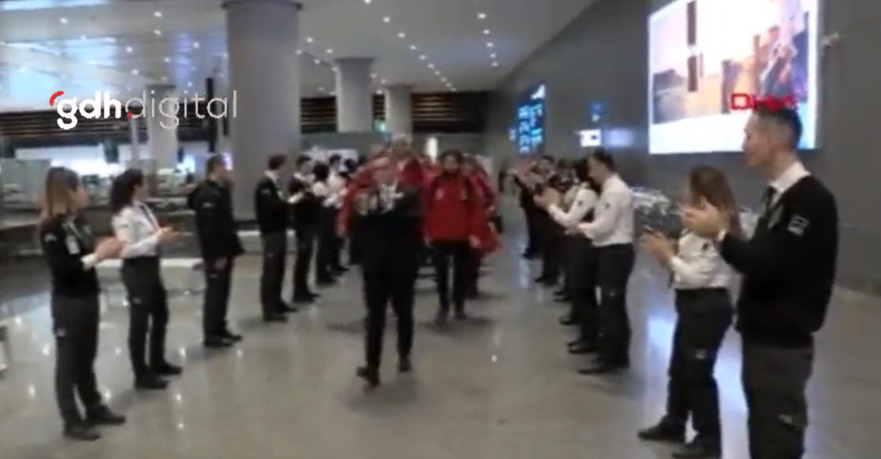 Πιο συγκεκριμένα, σε βίντεο, το οποίο μετέδωσε η τουρκική κρατική τηλεόραση κρατική τηλεόραση, φαίνεται η ελληνική αποστολή να μπαίνει στο αεροδρόμιο υπό το συνεχές και έντονο χειροκρότημα, τόσο των υπαλλήλων του αεροδρομίου όσο και των παρευρισκομένων στο κτίριο των αναχωρήσεων.