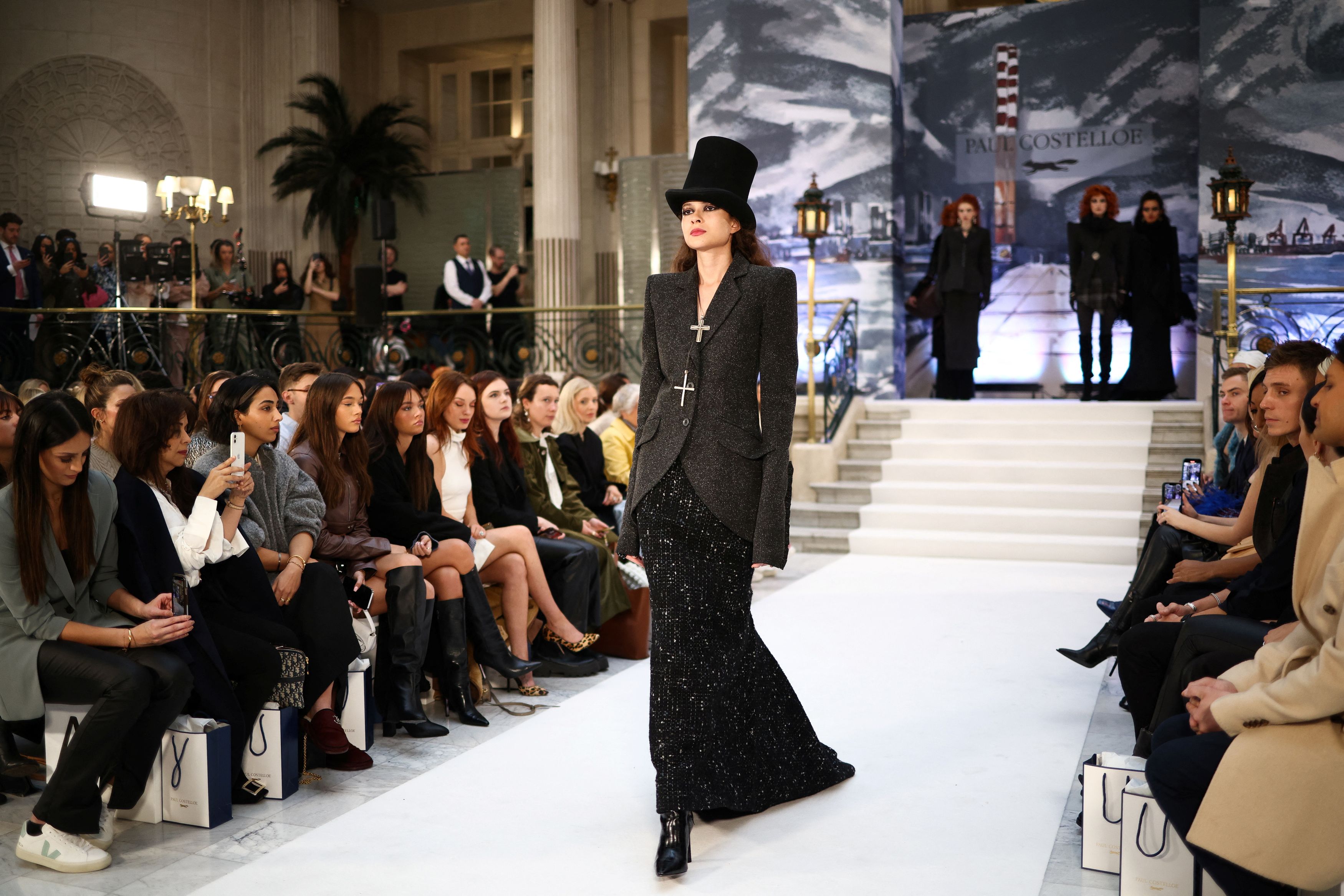 Από τα μεγαλύτερα highlights αποτελεί φέτος η συλλογή του Paul Costelloe, ο οποίος στράφηκε στο μυθιστόρημα του James Joyce «Οδυσσέας» για να αντλήσει έμπνευση για την τελευταία του συλλογή που περιλαμβάνει έξυπνα πλεκτά σε αποχρώσεις του καφέ, του γκρι και του πράσινου, καθώς και φορέματα διακοσμημένα με φλοράλ σχέδια σε χρυσές και ροζ αποχρώσεις. Ο 77χρονος σχεδιαστής δήλωσε ότι η σειρά αντανακλά «τη δυτική ακτή της Ιρλανδίας – πολύ ρομαντική, πολύ απαλή, πολύ πλούσια σε χρώματα».