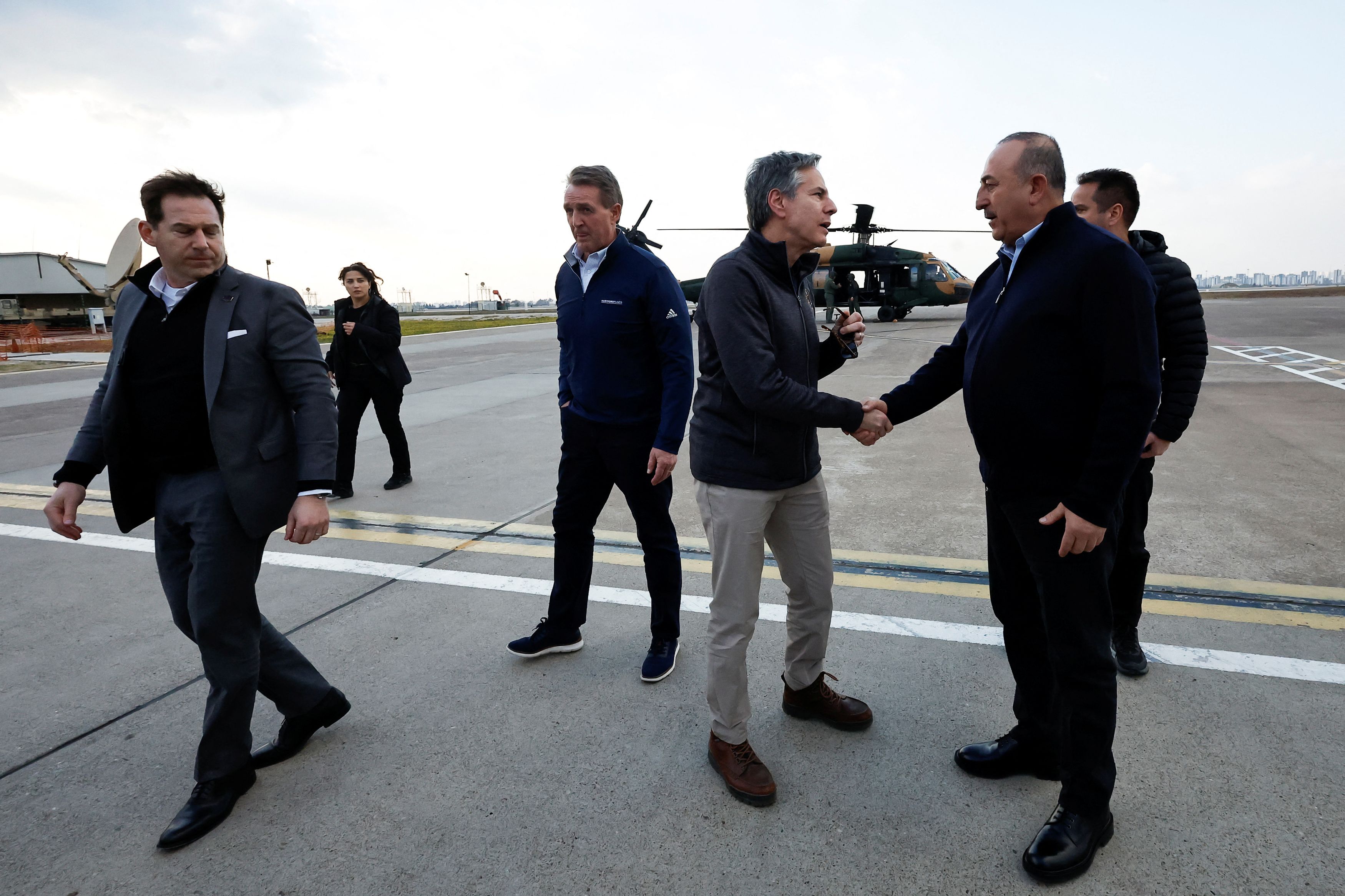 Η συνάντηση του Αντονι Μπλίνκεν με τον Μεβλούτ Τσαβούσογλου λίγο πριν την πτήση με ελικόπτερα του τουρκικού στρατού πάνω από τις πληγείσες περιοχές μετά τον φονικό σεισμό, ήταν εγκάρδια με αγκαλιές και ευχαριστίες από την πλευρά του Τούρκου υπουργού για την προσφερόμενη υλικοτεχνική βοήθεια.