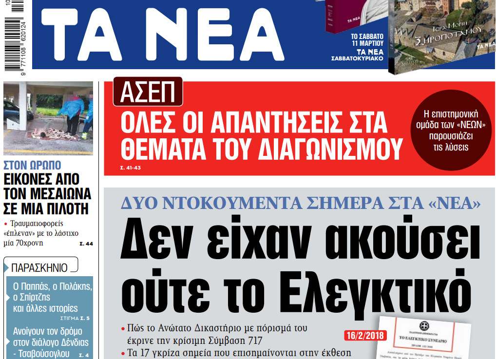 Δυο ντοκουμέντα σήμερα στα «ΝΕΑ»