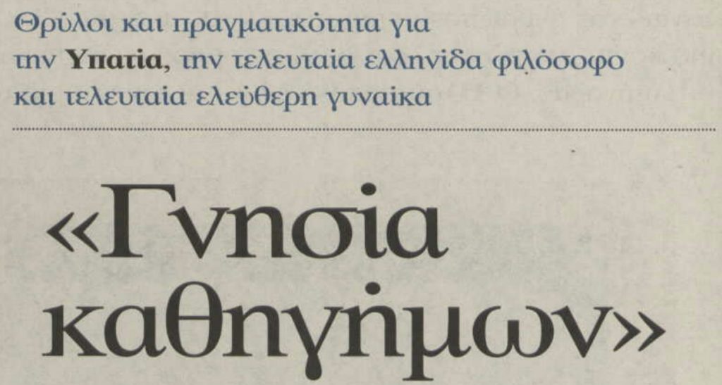 «Ποια είναι η αλήθεια για την Υπατία; Καμία από τις διαδεδομένες απόψεις περί του ατόμου της δεν φαίνεται να ευσταθεί (…).