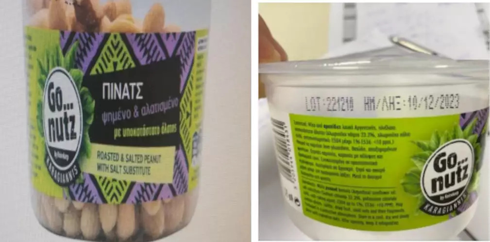 «Ο ΕΦΕΤ και ειδικότερα η Περιφερειακή Διεύθυνση Αττικής του ΕΦΕΤ, κατά τη διενέργεια επιθεώρησης στο πλαίσιο διερεύνησης αναφοράς καταναλωτή, προέβη σε έλεγχο του τροφίμου «Go Nutz- KARAGIANNIS, Πίνατς-Ψημένα και αλατισμένα με υποκατάστατο άλατος» των 220g με στοιχεία: ημερομηνία λήξης: 10/12/23 και