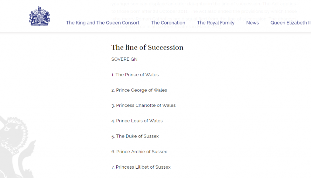 Η είδηση έγινε γνωστή από τον επίσημο ιστότοπο της Βρετανικής Βασιλικής οικογένειας. Συγκεκριμένα, ο Άρτσι και η Λιλιμπετ, αναφέρονται πλέον ως ο Πρίγκιπας και η Πριγκίπισσα του Sussex στη σελίδα που αφορά την διαδοχή του θρόνου.