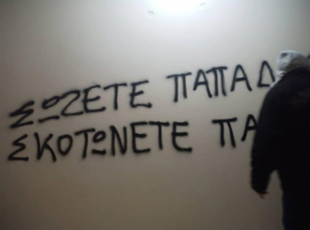 Πιο συγκεκριμένα, τα μέλη του Ρουβίκωνα πέταξαν τρικάκια έξω από το σπίτι του πρώην υπουργού Μεταφορών, τα οποία έγραφαν: «Καραμανλής, υπουργός εγκλημάτων και δολοφονιών. Ούτε βήμα πίσω. Οργάνωση και αγώνας».