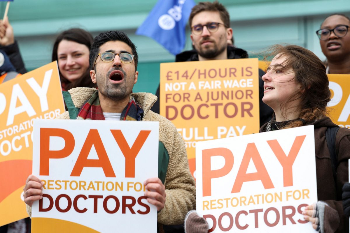 Για τρίτη συνεχή ημέρα απεργούν οι γιατροί  στη Μεγάλη Βρετανία. Διαμαρτύρονται κρατώντας πλακάτ μπροστά από το νοσοκομείο του Γουέστμινστερ στο Λονδίνο και ζητούν μεγαλύτερους μισθούς,