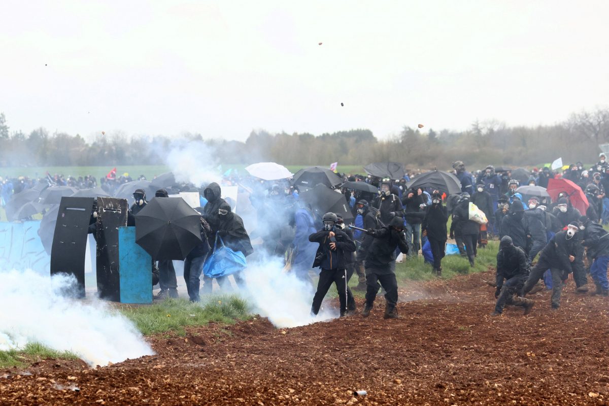 Γύρω στους 6.000 διαμαρτυρόμενοι, κυρίως νέοι, με οικολογικές πεποιθήσεις αλλά και άγριες διαθέσεις, Γάλλοι και ξένοι, καλά εξοπλισμένοι για τη μάχη βρέθηκαν στην κοινότητα Sainte Soline, από τη μια, και από την άλλη 3.200 αστυνομικοί με δακρυγόνα και βόμβες κρότου λάμψης.