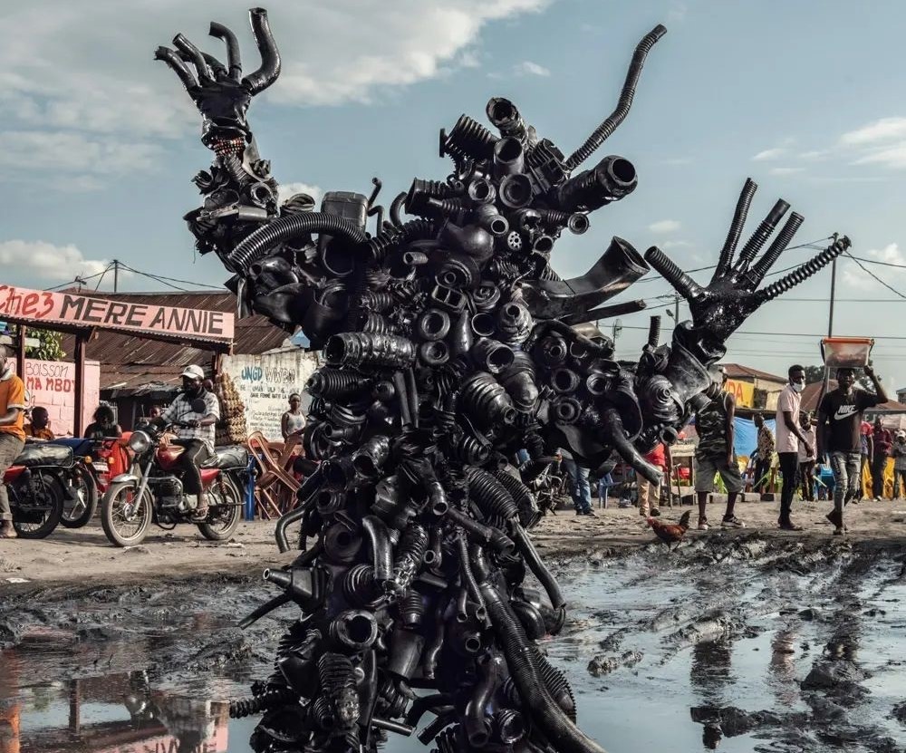 Η καλλιτεχνική κολεκτίβα «Ndaku, η ζωή είναι ωραία», την οποία ίδρυσε ο εικαστικός και καλλιτέχνης περφόρμανς Eddy Ekete, γνέθει πεταμένα κινητά, πλαστικά, φελλούς, αφρολέξ, σωλήνες, υφάσματα, σύριγγες, μέρη αυτοκινήτου, κονσέρβες και άλλα σκουπίδια σε κοστούμια και πανοπλίες για να συνηγορήσει υπέρ του χαρακτήρα του επείγοντος που αντιμετωπίζουν οι αναπτυσσόμενες χώρες ενόψει του προβλήματος πλαστικών και σπουπιδιών το οποίο ορθώνεται σαν βουνό.