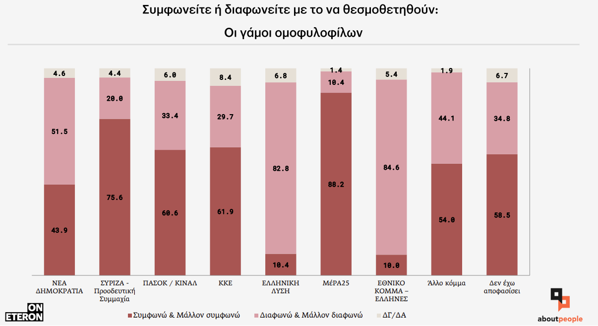 Ψηφοφόροι Νέας Δημοκρατίας: Κεντρώοι φιλελεύθεροι κατά του γάμου των ομόφυλων ζευγαριών