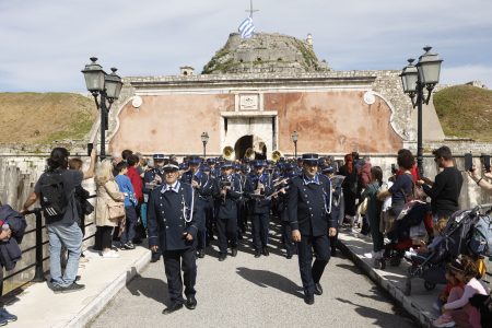Το «νησί των Φαιάκων» γέμισε από τα πένθιμα εμβατήρια των Φιλαρμονικών και των χορωδιών, οι οποίοι έψαλαν το εγκώμιο του επιταφίου «Ω γλυκύ μου Έαρ». Οι πιστοί κρατούσαν μεγάλα κεριά (τόρτσες), λάβαρα και φλάμπουρα (σκόλες) σε ένδειξη πένθους, καθώς η πομπή κατευθυνόταν προς το λιμάνι της Αλύπας.