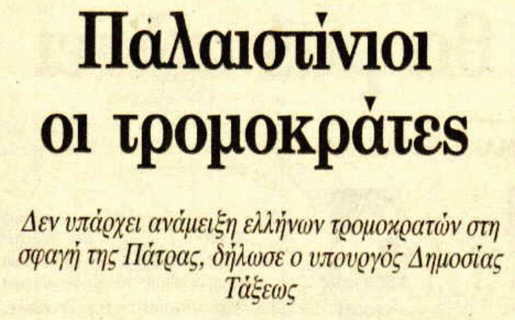 Βρισκόμαστε στις αρχές της δεκαετίας του ’90, η «17 Νοέμβρη», κυρίως, αλλά και άλλες τρομοκρατικές οργανώσεις με βίαιη δράση στην Ελλάδα δεν έχουν ακόμα εξαρθρωθεί, οπότε μοιραία δημιουργείται ο συνειρμός ότι πιθανότατα το μακελειό στην Πάτρα οφείλεται σε χτύπημα «εσωτερικής τρομοκρατίας».