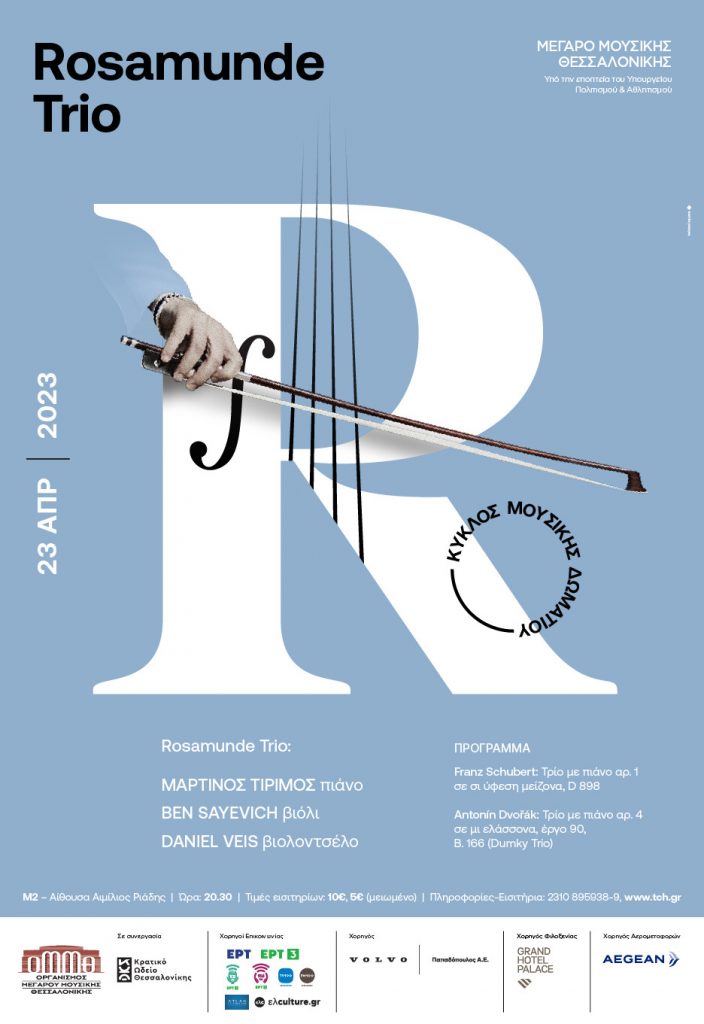 Μετά από πρόσκληση και σε συνεργασία με το Κρατικό Ωδείο Θεσσαλονίκης και το Μέγαρο Μουσικής Θεσσαλονίκης, το Rosamunde Trio διοργανώνει μια μοναδική συναυλία με έργα Schubert και Dvořák την Κυριακή 23 Απριλίου στις 20:30 στην αίθουσα «Αιμίλιος Ριάδης» του Μεγάρου Μουσικής Θεσσαλονίκης.