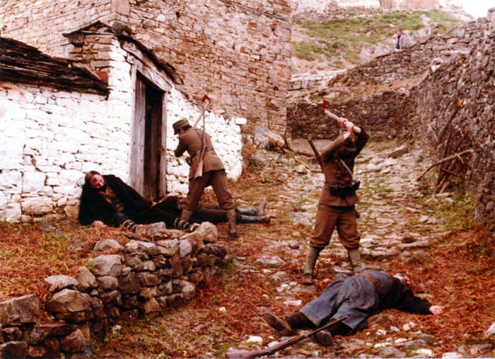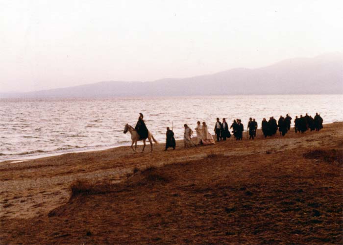 Αν δεν υπήρχαν οι δυνατοί προβολείς του κινηματογραφικού συνεργείου, ο επισκέπτης σίγουρα θα ξαφνιαζόταν βλέποντας τους χωροφύλακες να περπατούν αγκαλιά με οπλισμένους γενειοφόρους ληστές και αναρχικούς, να αστειεύονται μεταξύ τους και να βοηθά μάλιστα ο ένας τον άλλο να ξεκολλήσει από τη λάσπη. Τέτοια «συνύπαρξη» της εξουσίας με την… παρανομία μόνο σε ταινία μπορούσε να υπάρξει. Σε μια ταινία ή για να ακριβολογούμε στα παρασκήνια της ταινίας του Θόδωρου Αγγελόπουλου για τον «Μεγαλέξανδρο».