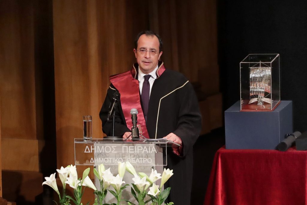 Την Πέμπτη 27 Απριλίου 2023 και ώρα 17:00, στο Δημοτικό Θέατρο Πειραιά, το Πανεπιστήμιο Πειραιώς, διοργάνωσε την τελετή αναγόρευσης σε Επίτιμο Διδάκτορα Τμήματος Διεθνών και Ευρωπαϊκών Σπουδών της Σχολής Οικονομικών Επιχειρηματικών και Διεθνών Σπουδών του Προέδρου της Κυπριακής Δημοκρατίας, Νίκου Χριστοδουλίδη.
