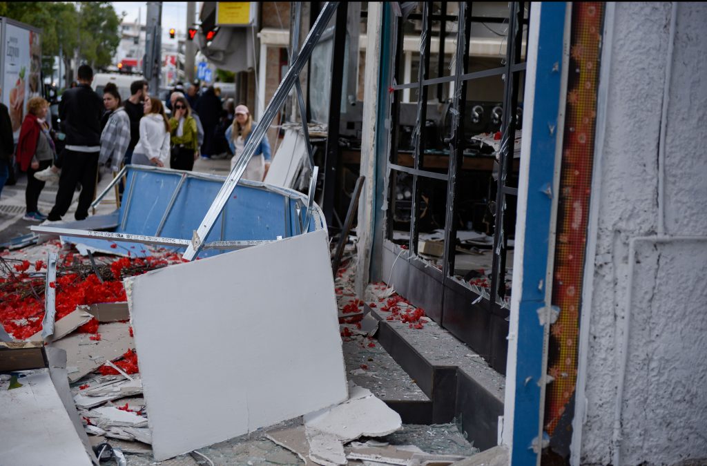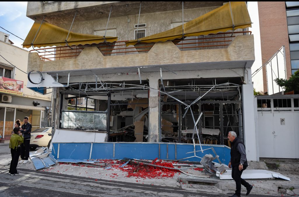 Η καφετέρια καταστράφηκε σχεδόν ολοσχερώς, ενώ παράλληλα ζημιές προκλήθηκαν σε διαμέρισμα που βρίσκεται από πάνω, σε άλλα τρία κτίρια, καθώς και σε τέσσερα σταθμευμένα οχήματα.