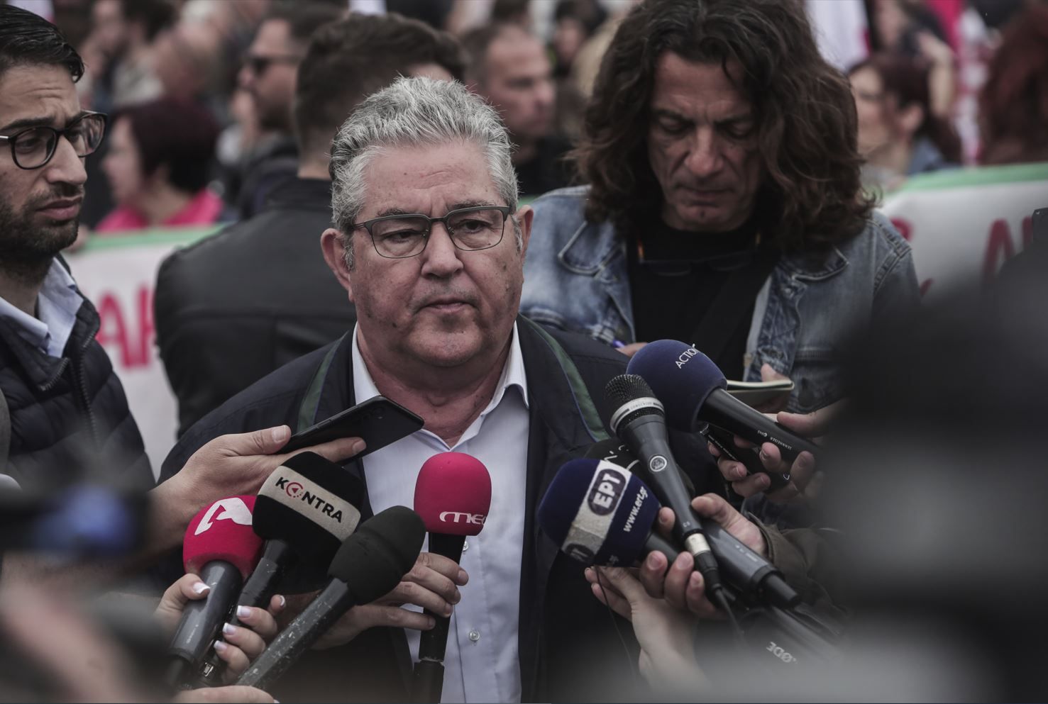 Παρών στη συγκέντρωση στην πλατεία Συντάγματος και ο γενικός γραμματέας του ΚΚΕ Δημήτρης Κουτσούμπας.