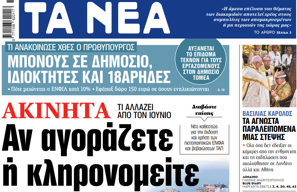 Διαβάστε στα «ΝΕΑ» της Δευτέρας: