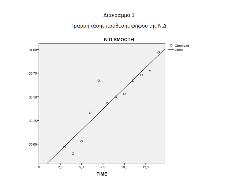 Η εξέλιξη των μεγεθών στο χρόνο παρουσιάζει κανονικότητες και οι σχετικές προβολές στο μέλλον με την κατάλληλη μεθοδολογία και τη χρήση αξιόπιστων δεδομένων παρέχουν ακριβείς εκτιμήσεις. Το γεγονός ότι τα δεδομένα της χρονολογικής σειράς που χρησιμοποιήθηκαν αποτελούν τον μέσο όρο οκτώ δημοσκοπήσεων κατά μήνα και όχι μιας μόνο παρέχουν καλύτερες προοπτικές επιτυχούς πρόβλεψης. Τέλος, δεν πρέπει να ξεχνάμε ότι τα χρησιμοποιούμενα δεδομένα προέρχονται από δειγματοληπτικές έρευνες (δημοσκοπήσεις) και επομένως υπόκεινται σε σχετικό σφάλμα.